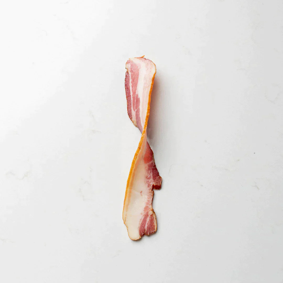 Our thick-sliced bacon is cut fresh from super high-quality, locally sourced pork belly, then salt-cured in-house for one week before being hickory smoked for a flavour that is… well… it’s something else! Each bite of our thick-cut bacon has an excellent balance of salt and smoke factor, making this bacon great as a standalone breakfast snack or accompaniment to your favourite sandwich, pasta, or even salad.