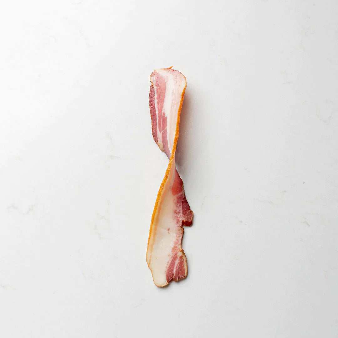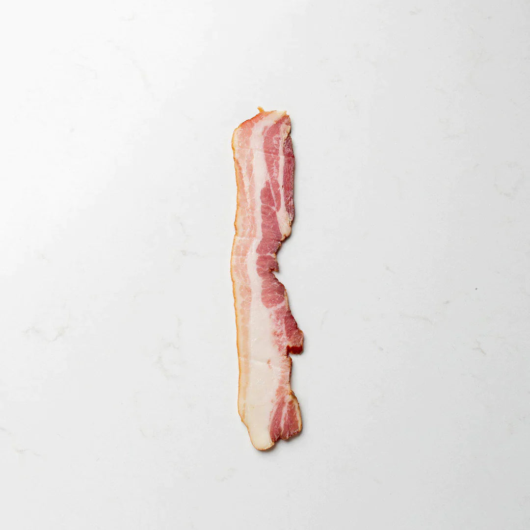 Our thick-sliced bacon is cut fresh from super high-quality, locally sourced pork belly, then salt-cured in-house for one week before being hickory smoked for a flavour that is… well… it’s something else! Each bite of our thick-cut bacon has an excellent balance of salt and smoke factor, making this bacon great as a standalone breakfast snack or accompaniment to your favourite sandwich, pasta, or even salad.